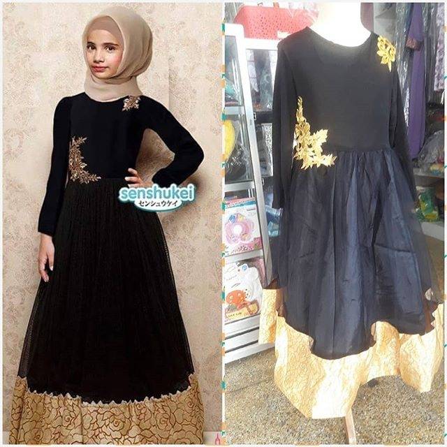 Jual Gamis Hitam Bordir Gold Plus Hijab Indonesia Shopee Indonesia